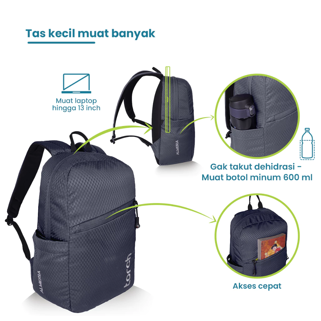 Bagi kamu yang butuh backpack serbaguna untuk sekolah, kuliah, kerja, atau traveling, TORCH Almeria Daily Backpack 17 Liter adalah pilihan tepat.